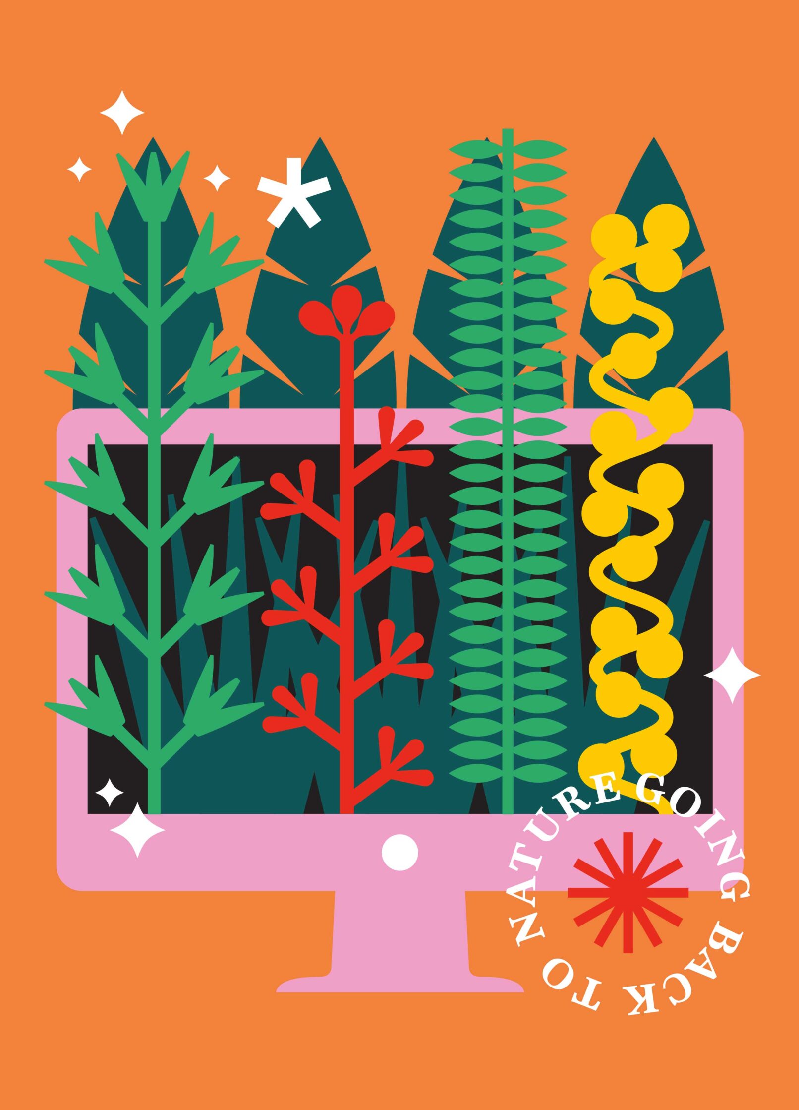 Back to Nature illustrations were created for a excercise book brand, fusing the serene beauty of nature with the invasion and eventual triumph over the world of technology. This piece aims to evoke a sense of awe and reflection, highlighting the power and resilience of the natural world.